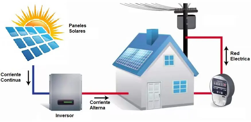Es un sistema de generación solar fotovoltaico que se conecta directamente a la red eléctrica pública.
